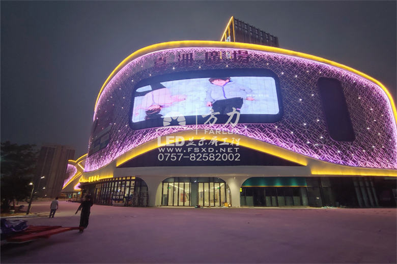 【项目简介】:乐平嘉洲广场是佛山嘉洲集团继南海嘉洲广场、里水嘉洲广场后的第三个大型购物中心项目。该项目位于乐平镇乐平大道,用地面积4.08万㎡,总建筑面积11.5万㎡,由5.7万㎡的体验式购物中心、2.4万㎡高端公寓、3.4万㎡大型地下停车场组成,总投资8亿元。商业中心业态分布,项目设计本身也颇有心思,包括:1、塔楼、裙楼全覆盖的LED泛光照明;2、广场主入口的LED互动投影;3、幕墙“双狮眼”LED透明显示屏。